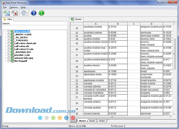 Không giống như các chức năng khôi phục của Excel, Easy Excel Recovery không gặp thất bại thậm chí với cả một trang bảng tính bị lỗi rất nặng. Chương trình tiến hành phân tích trang bảng tính, khám phá dữ liệu vẫn còn có sẵn, trích rút thông tin từ trang bảng tính bị lỗi, sửa cấu trúc gốc của file XLS.
