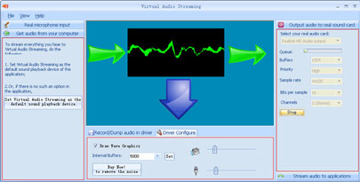 Như là một card âm thanh ảo “loopback”, Virtual Audio Streaming có thể tạo ra các kênh ảo giữa 2 ứng dụng âm thanh. Ví dụ, bạn có thể “pipe” âm thanh của RealPlayer vào bộ mã hóa MP3 mà không làm mất đi chất lượng.